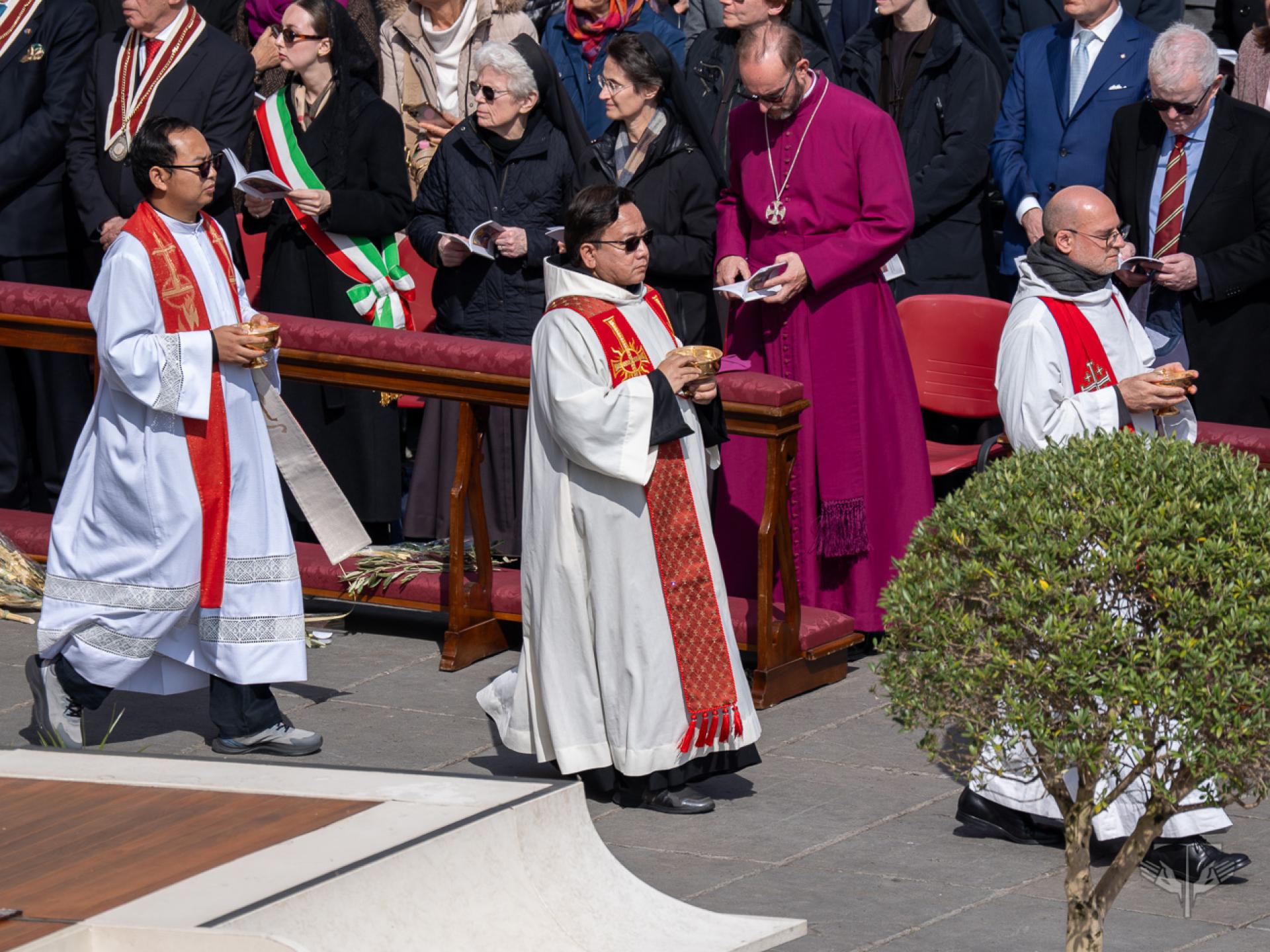 Al termine della Messa, il Santo Padre ha guidato la preghiera dell’Angelus. All’inizio della Settimana Santa, ha espresso la vicinanza della Chiesa “ai cristiani del Medio Oriente”, provati da un “conflitto atroce”, e ha invitato a elevare la supplica “al Principe della pace”, perché sostenga “i popoli feriti dalla guerra” e apra “cammini concreti di riconciliazione e di pace”. Ha inoltre ricordato i marittimi vittime della guerra e i migranti morti in mare, rinnovando l’invocazione: “Terra, cielo e mare sono creati per la vita e per la pace!”.