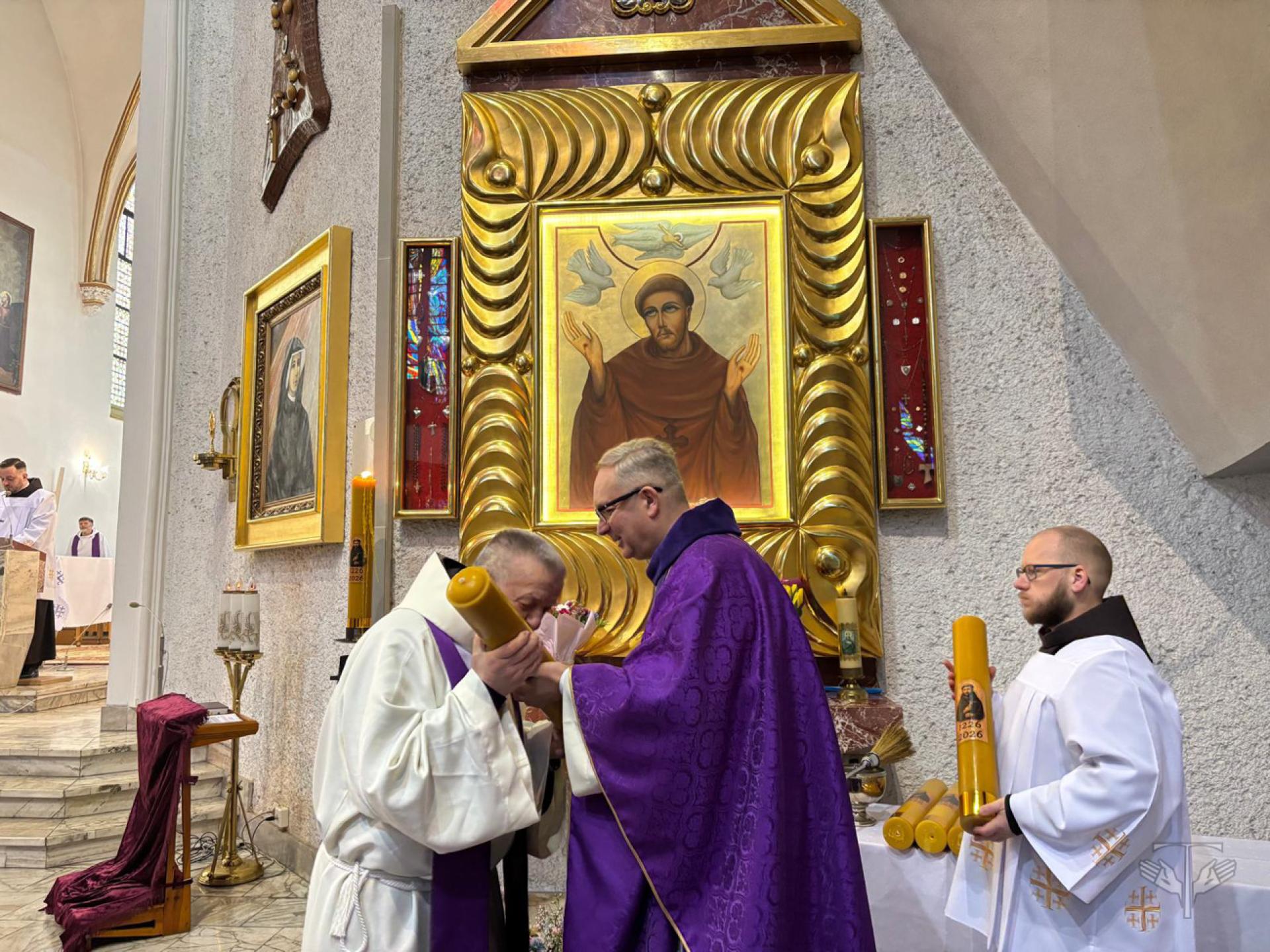 La solenne celebrazione eucaristica, presieduta dal Ministro provinciale Fr. Krzysztof Bobak, ha rappresentato il momento cruciale della giornata, ideata come rendimento di grazie al buon Dio. Durante la Santa Messa, a cui hanno partecipato i frati rappresentanti dei conventi dell’intera Provincia, sono state benedette le candele giubilari che i fratelli hanno poi portato nelle loro fraternità come segno di unità, preghiera e responsabilità per la Provincia e per tutto l’Ordine dei Frati Minori.