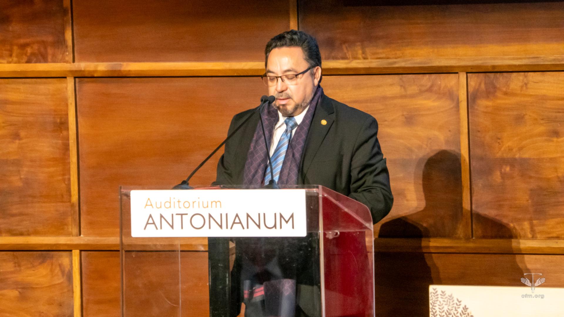 In seguito, è intervenuto l’Ambasciatore del Guatemala presso la Santa Sede, Alfredo Vásquez Rivera, che si è soffermato sulla figura di S. Antonio di Padova e sulla statua che l’Ambasciata ha donato all’Università e che di lì a poco è stata svelata.