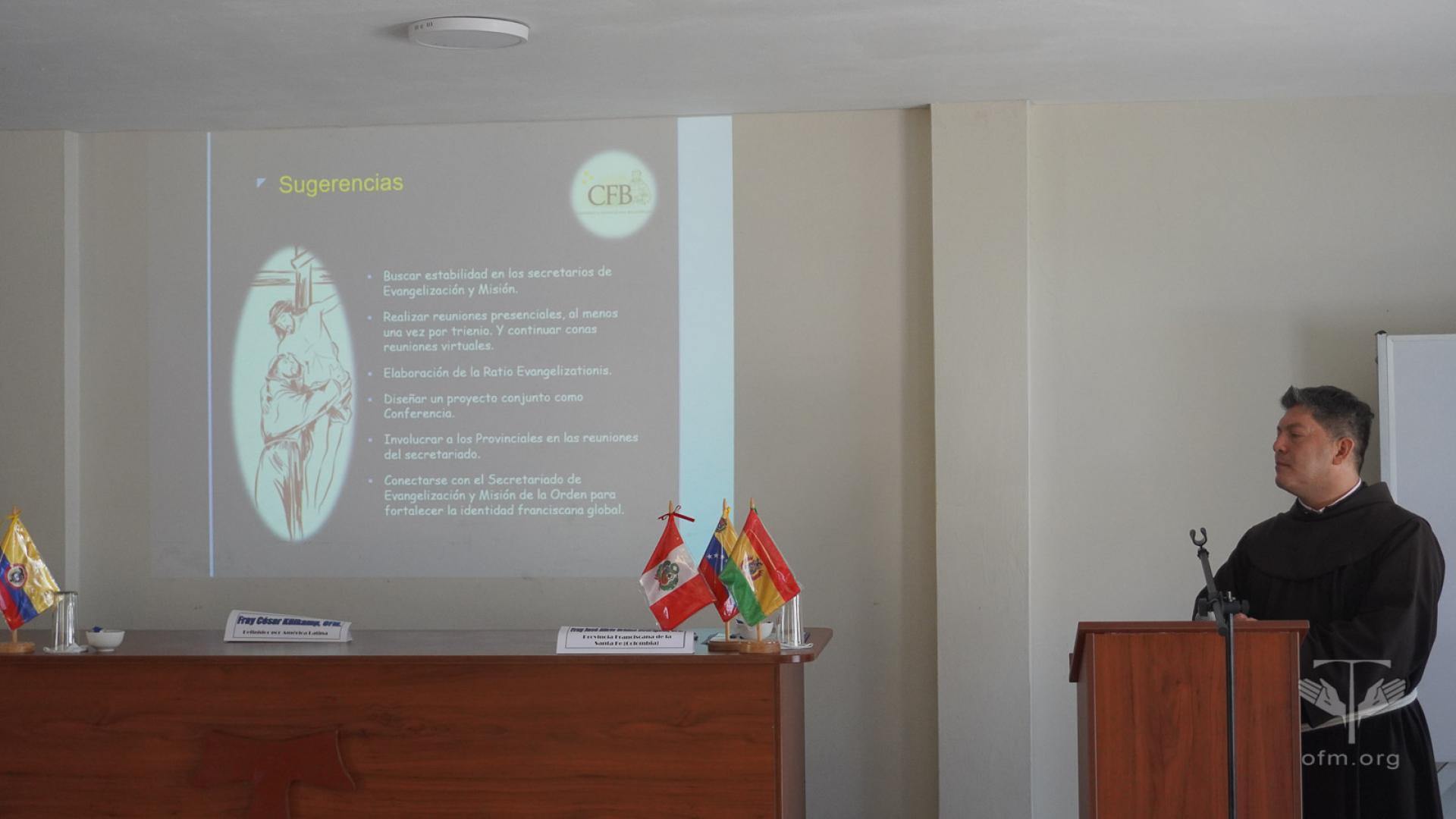 Fr. César Kulkamp, OFM, Definitore generale per l'America Latina, ha offerto parole di motivazione ai presenti, esortandoli a continuare a rafforzare la collaborazione missionaria, a discernere i segni dei tempi e a mantenere vivo lo spirito del carisma francescano nella regione bolivariana. Li ha inoltre incoraggiati a costruire su quanto realizzato nel triennio precedente, progettando con speranza le linee d'azione per il futuro.