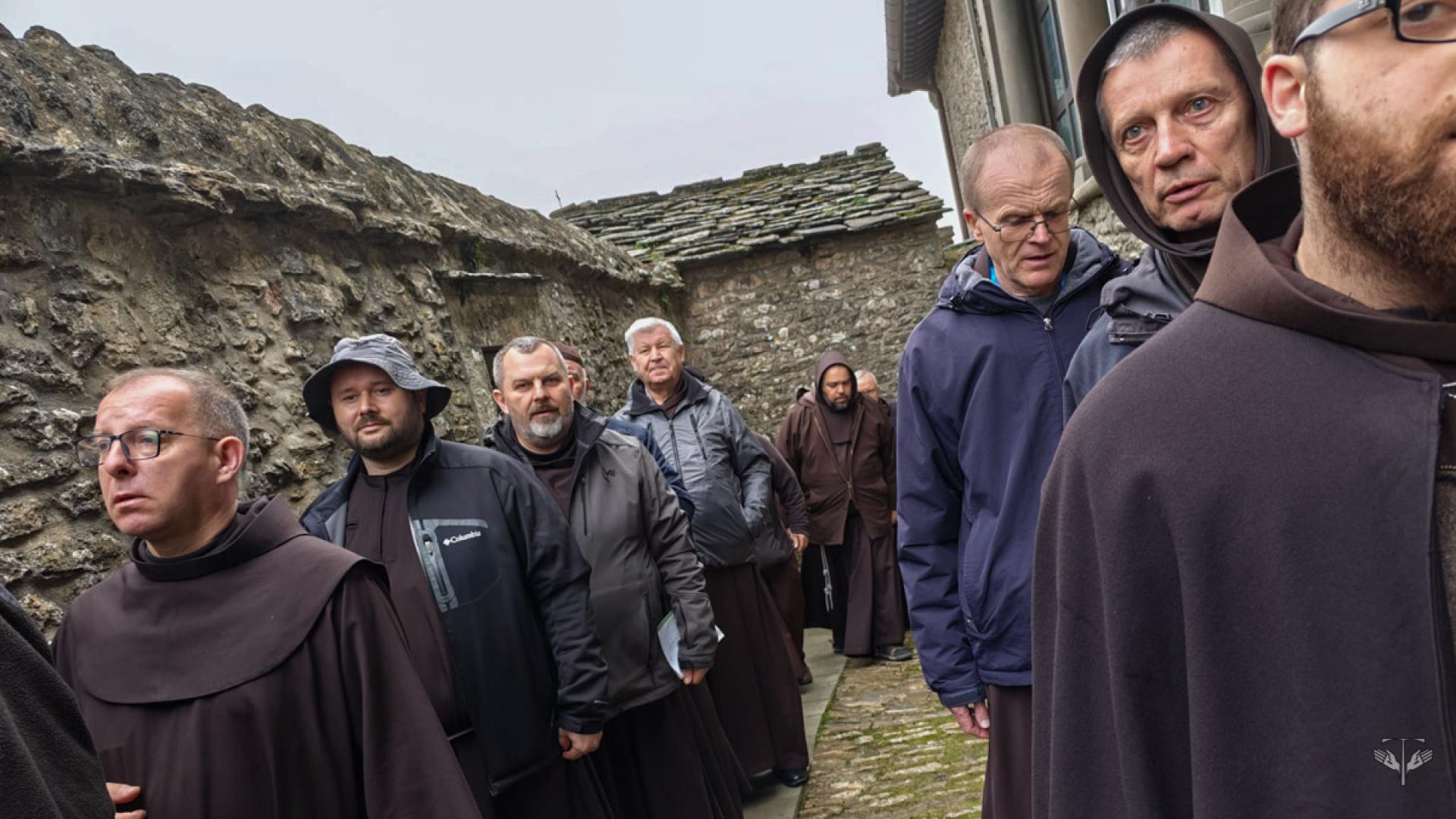 Durante il soggiorno ad Assisi i pellegrini hanno visitato anche l’Eremo delle Carceri e la Porziuncola nella Basilica di Santa Maria degli Angeli. In questo luogo sacro, l’Eucaristia è stata presieduta di nuovo dal Ministro provinciale, che ha pregato particolarmente per la Provincia e per i preparativi del prossimo Capitolo provinciale. In quella stessa giornata è stato celebrato anche il 25° anniversario della professione perpetua di Fr. Krzysztof e di Fr. Adam Stanik.