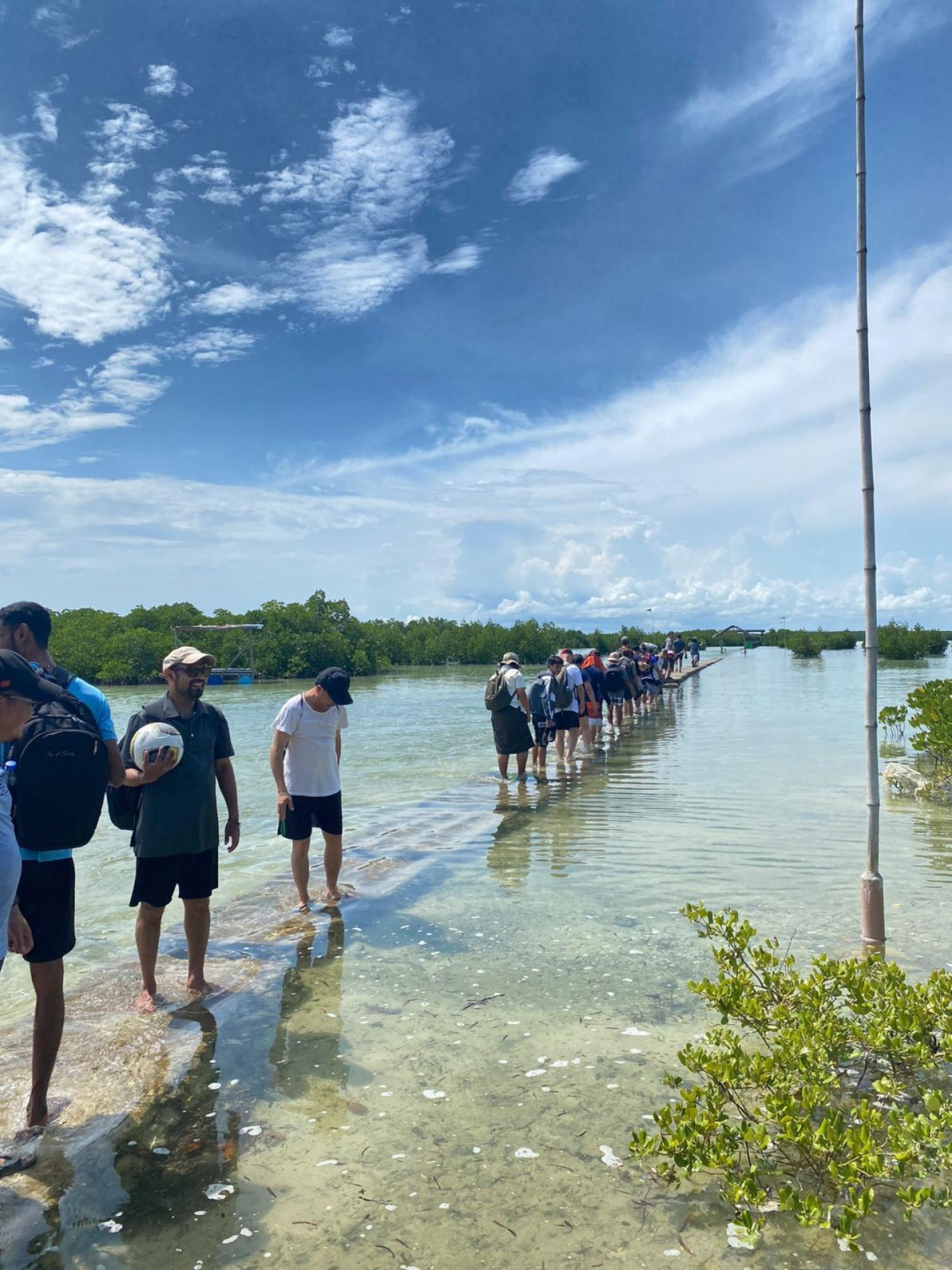 I partecipanti si sono recati in spiaggia per una vera avventura, passeggiando tra le forti correnti nei sentieri sconnessi lungo le mangrovie, sotto il caldo torrido del sole, per dare un’occhiata al santuario degli uccelli e infine per fare un’esperienza rinfrescante: nuotare, chiacchierare, giocare e ballare, tutti divertendosi in semplicità.