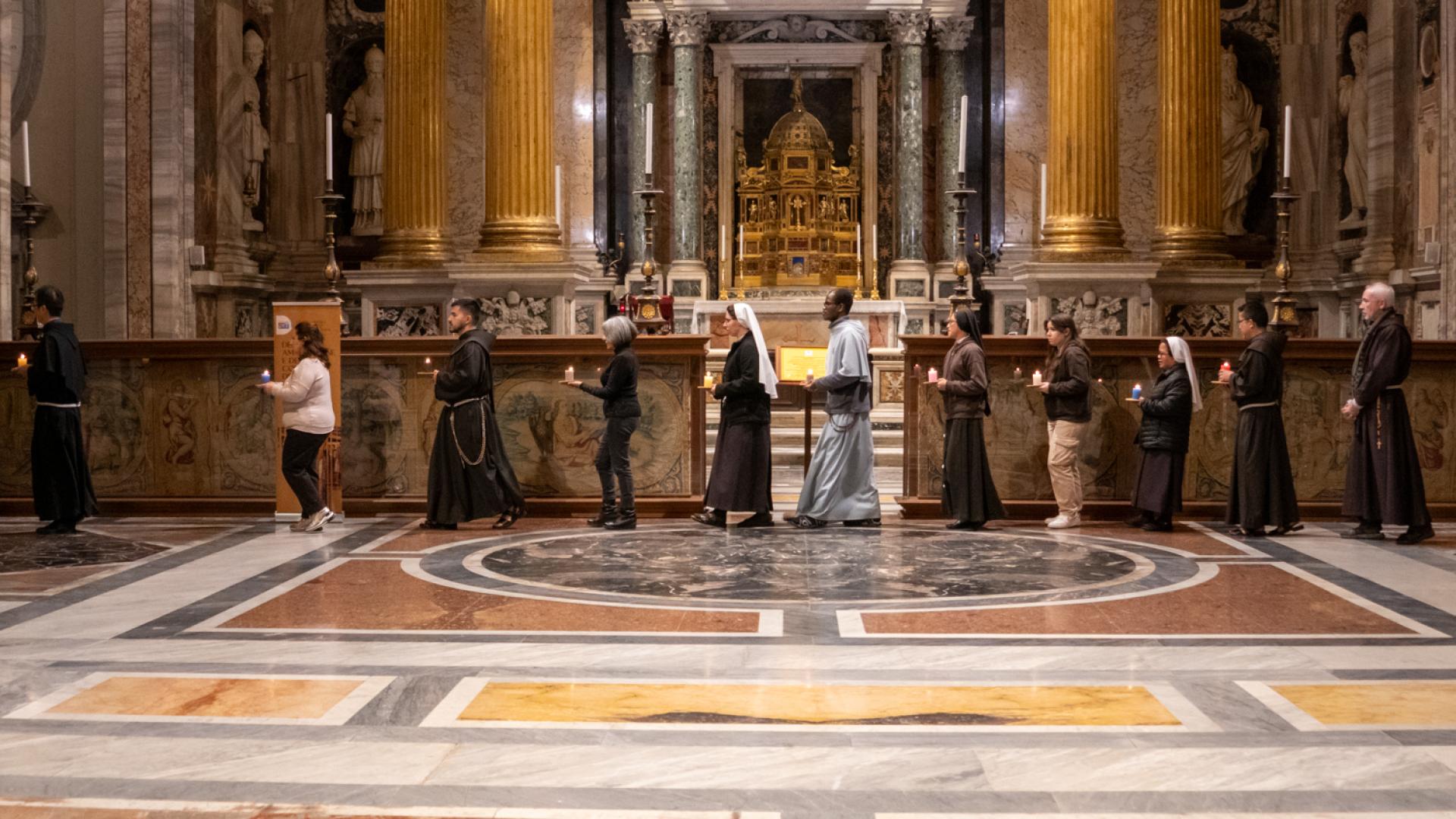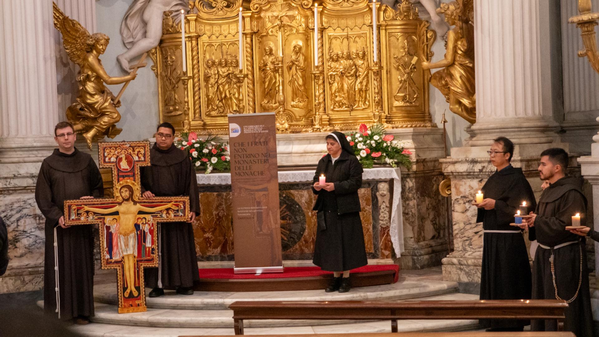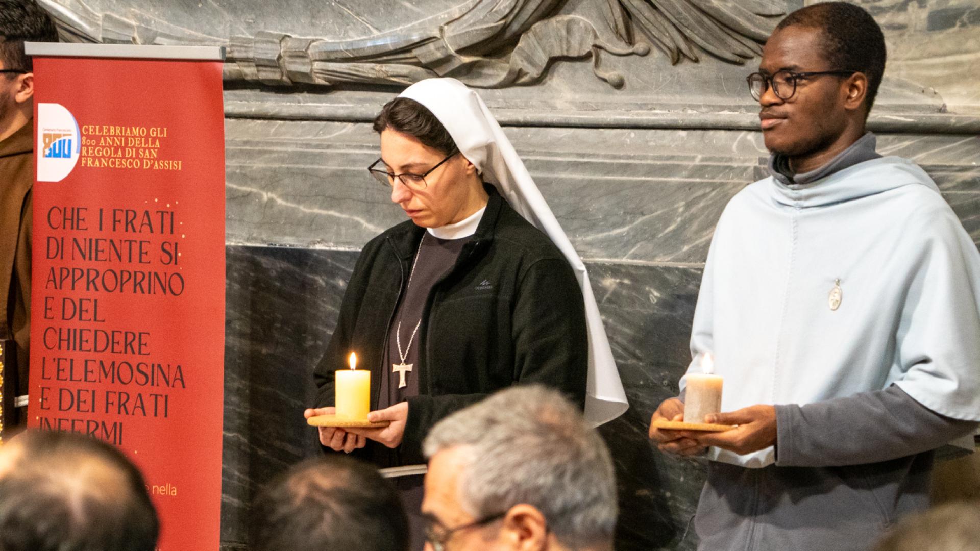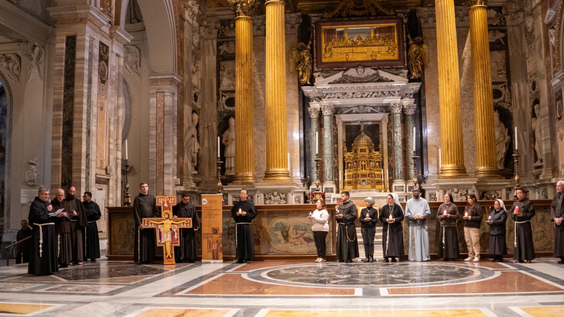 In un itinerario fisico e spirituale all’interno della Basilica, abbiamo ripercorso il cammino della Regola in 12 passi, uno per ogni capitolo, accendendo volta per volta una lanterna a simboleggiare la luce del Vangelo, attualizzato da Francesco e da tanti francescani che in 800 anni hanno trovato modi sempre nuovi di viverlo. Un cammino che ha svelato, ad ogni passo, il centro della vita di ogni francescano: Cristo Crocifisso, che parlò a Francesco più di 800 anni fa e che ancora oggi parla ad ognuno di noi.
