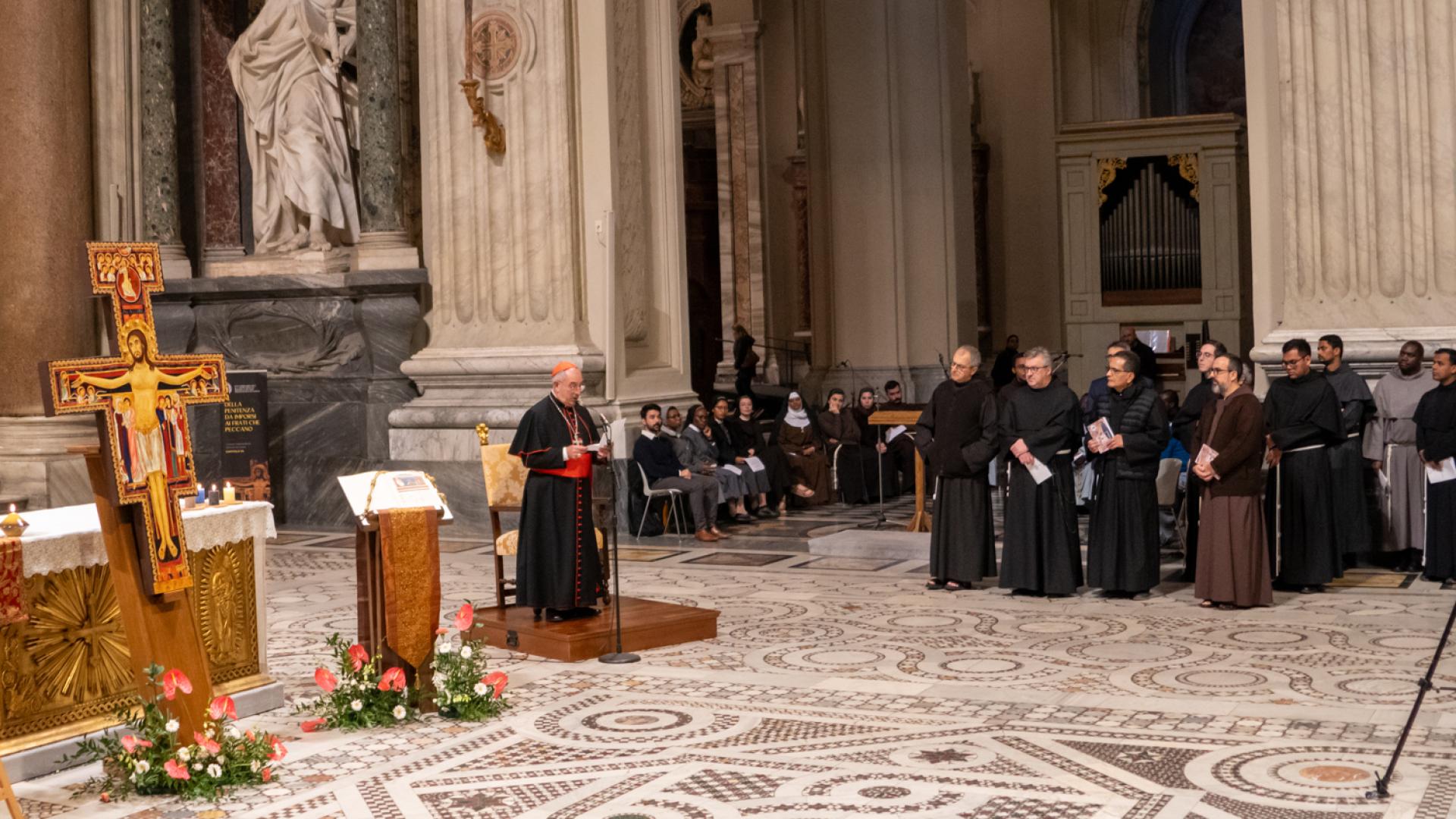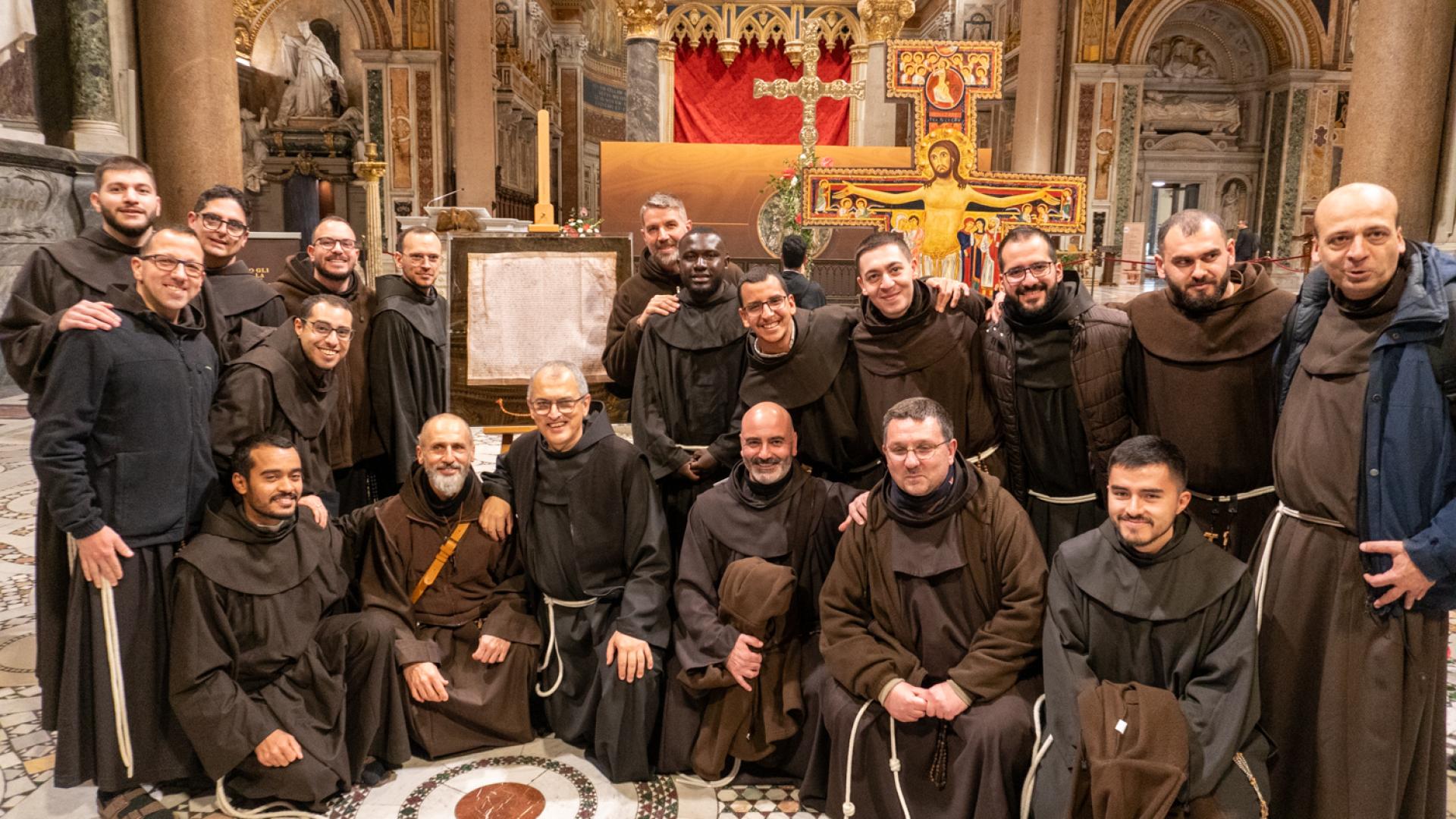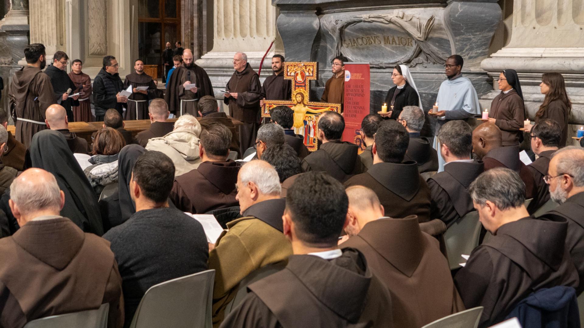 Anche se non presente fisicamente, Papa Francesco ha partecipato con un messaggio rivolto a tutti noi membri della famiglia francescana, letto dal cardinale Angelo De Donatis, vicario del Pontefice per la Diocesi di Roma, che ha presieduto la celebrazione: “Per San Francesco il Vangelo è stato al centro della sua esistenza; e la Chiesa ne ha approvato il proposito, riconsegnandolo a lui e a tutti voi francescani come un testo che non esprime più soltanto l’intuizione spirituale di un Fondatore, ma una forma di vita”. Ci ha ricordato che per vivere gli insegnamenti del Maestro è necessario rimanere nella Chiesa. E alla fine ci ha invitato ad andare per il mondo: “Per voi frati e sorelle francescani significa concretamente realizzare la vocazione itinerante in uno stile di fraternita e di vita pacifica, senza liti o dispute né tra voi né con gli altri, dando prova di ‘minorità’, con mitezza e mansuetudine, annunciando la pace del Signore e affidandovi alla provvidenza: è uno speciale programma di evangelizzazione, possibile a tutti”.