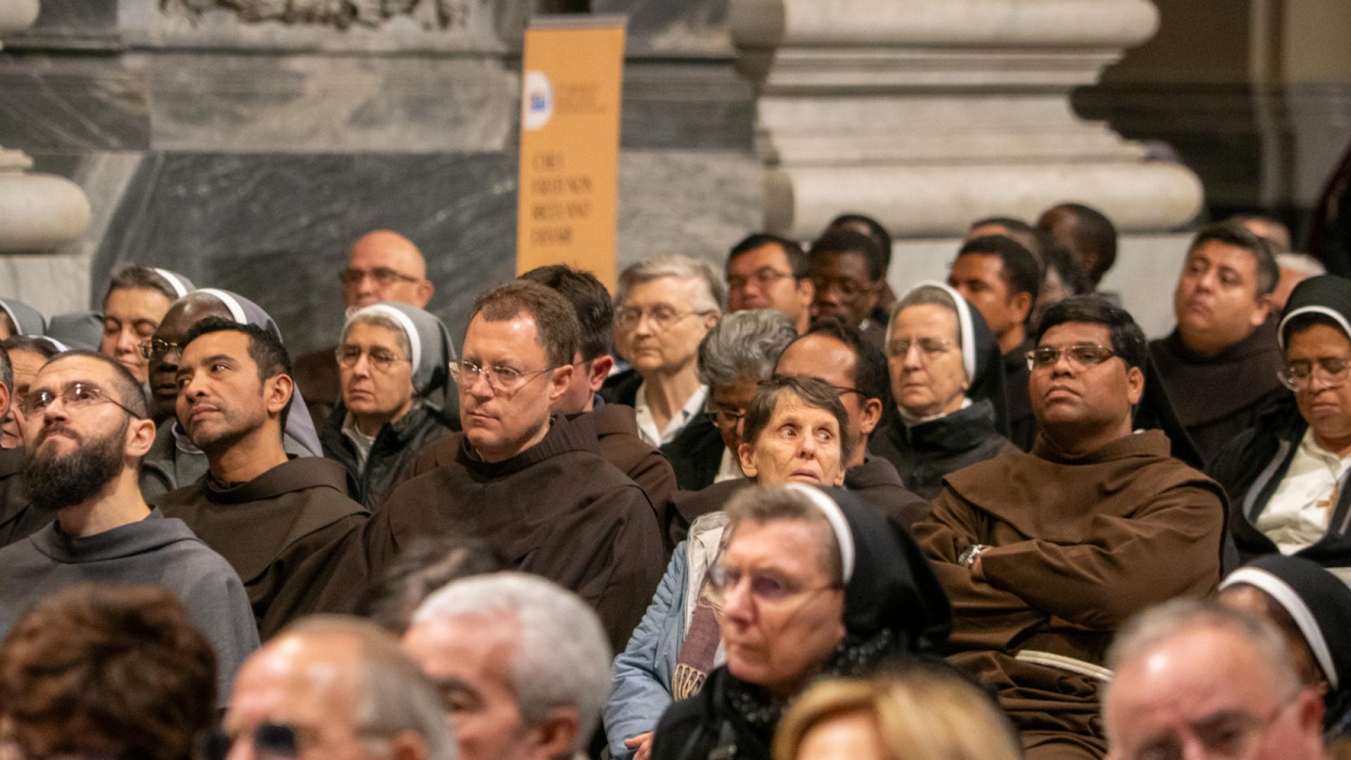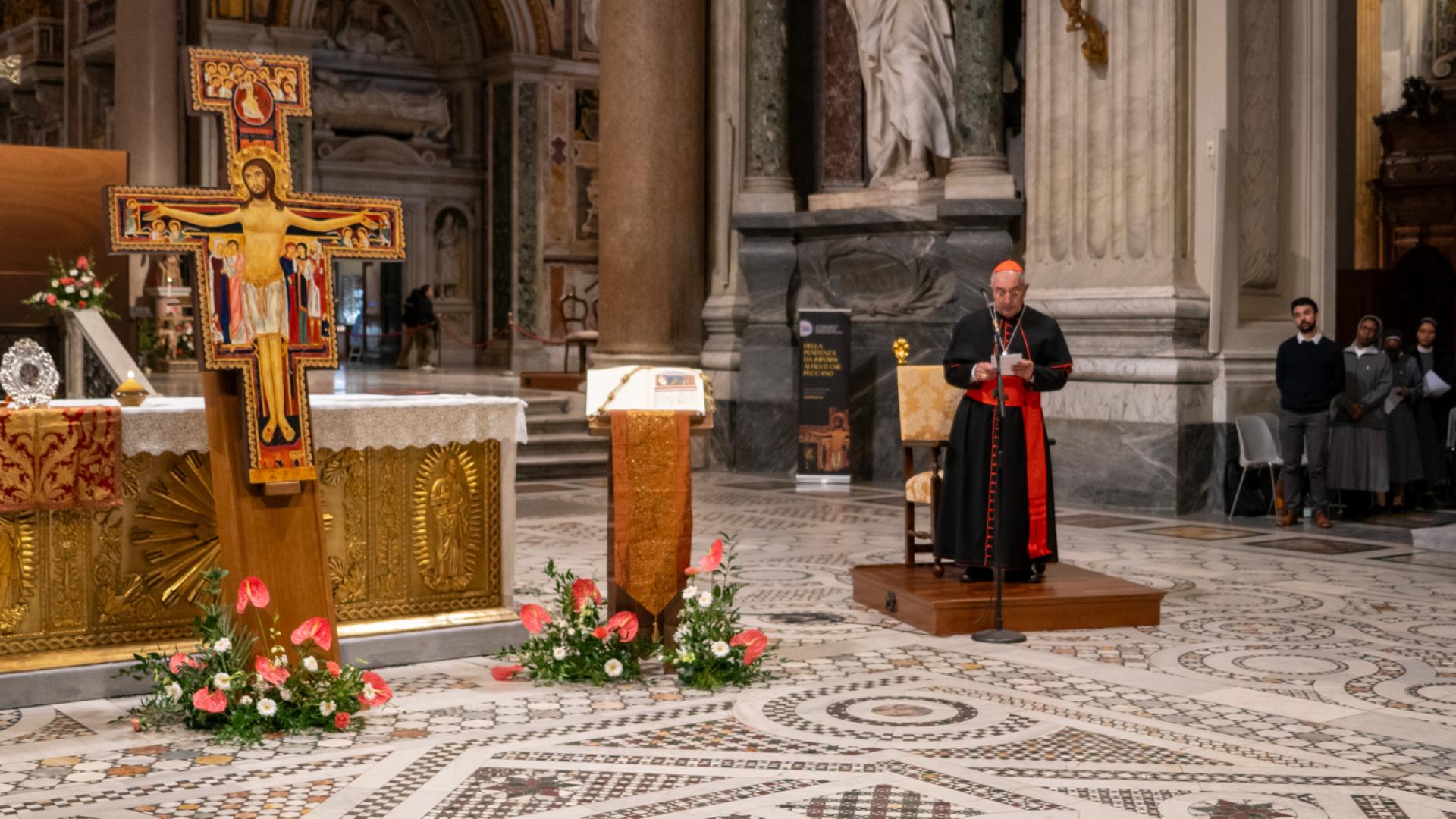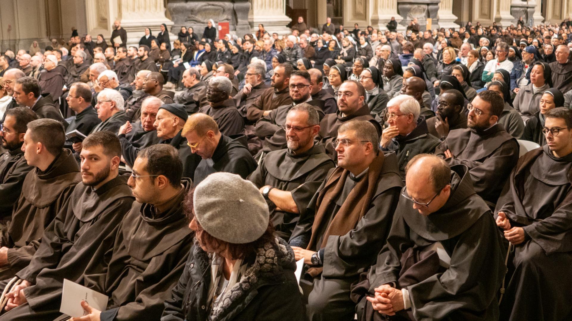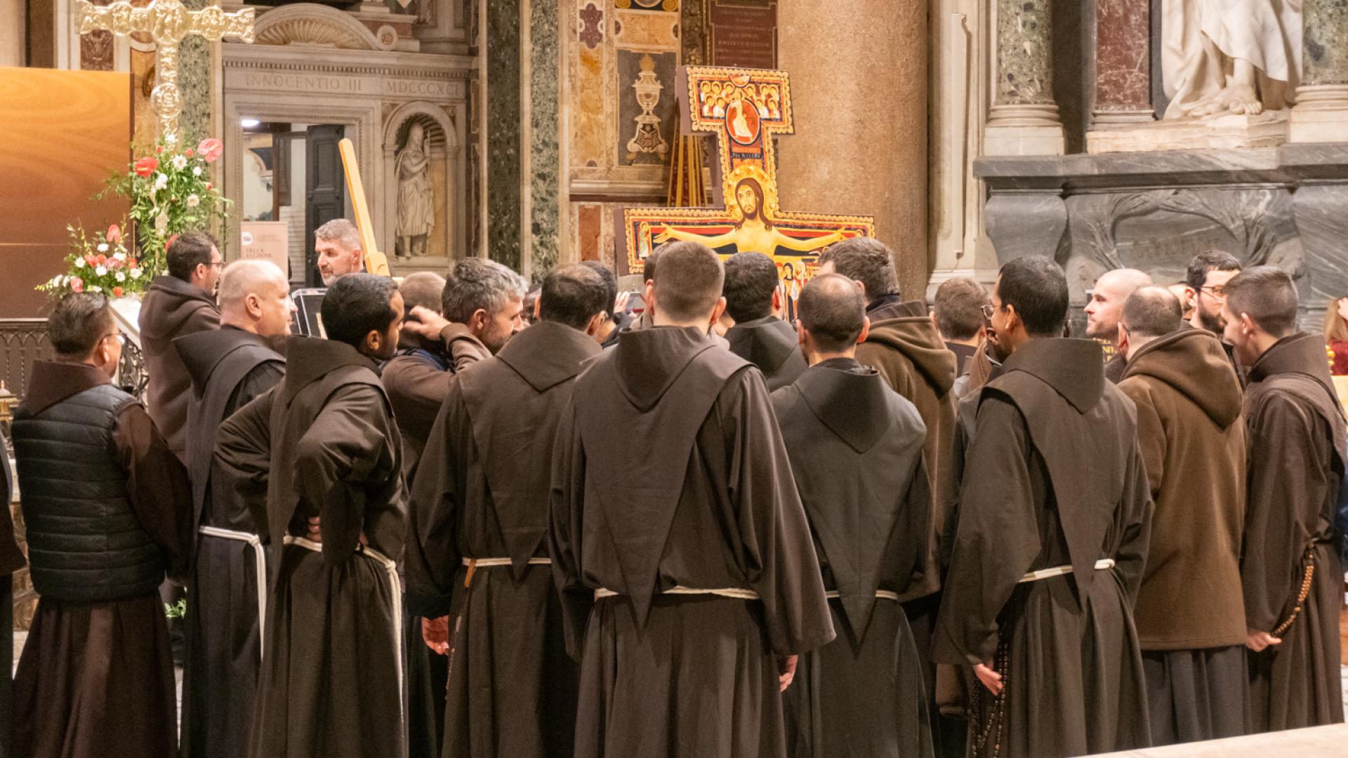 Anche se non presente fisicamente, Papa Francesco ha partecipato con un messaggio rivolto a tutti noi membri della famiglia francescana, letto dal cardinale Angelo De Donatis, vicario del Pontefice per la Diocesi di Roma, che ha presieduto la celebrazione: “Per San Francesco il Vangelo è stato al centro della sua esistenza; e la Chiesa ne ha approvato il proposito, riconsegnandolo a lui e a tutti voi francescani come un testo che non esprime più soltanto l’intuizione spirituale di un Fondatore, ma una forma di vita”. Ci ha ricordato che per vivere gli insegnamenti del Maestro è necessario rimanere nella Chiesa. E alla fine ci ha invitato ad andare per il mondo: “Per voi frati e sorelle francescani significa concretamente realizzare la vocazione itinerante in uno stile di fraternita e di vita pacifica, senza liti o dispute né tra voi né con gli altri, dando prova di ‘minorità’, con mitezza e mansuetudine, annunciando la pace del Signore e affidandovi alla provvidenza: è uno speciale programma di evangelizzazione, possibile a tutti”.