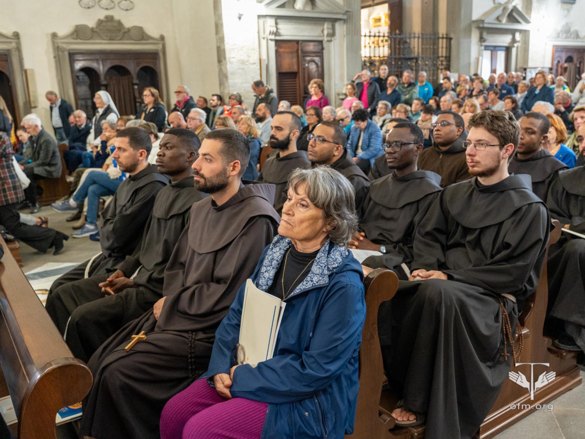 Nella sua omelia, riprendendo gli scritti di San Bonaventura, di cui quest’anno ricorre il 750° anniversario della sua morte, Fr. Massimo ha sottolineato come Francesco abbia voluto partecipare totalmente alla vita di Cristo, chiave per capire fino in fondo la vita del Poverello: «Le Stimmate ci parlano di una conoscenza di Cristo che è un fuoco che arde. Questo illumina e scalda una vita cristiana spesso tiepida e ripetitiva, dove sembra impossibile donare tutto di noi al Signore. Quanto ci accontentiamo, quanto abbiamo paura di consegnarci a Gesù Cristo, il quale “non ci toglie nulla e ci dà tutto”, come diceva in modo ispirato Benedetto XVI». L’esperienza delle Stimmate cambia profondamente la vita di Francesco, che si apre agli stimmatizzati del tempo, di ogni tempo, in cui la guerra e la violenza sembrano vincere sull’umanità: «Mi sembra che qui ci sia la prova più grande alla nostra fede oggi. Non evitiamola. Entriamoci», ha concluso il Ministro, ricordando che Cristo Risorto trasforma ogni ferita in luce.