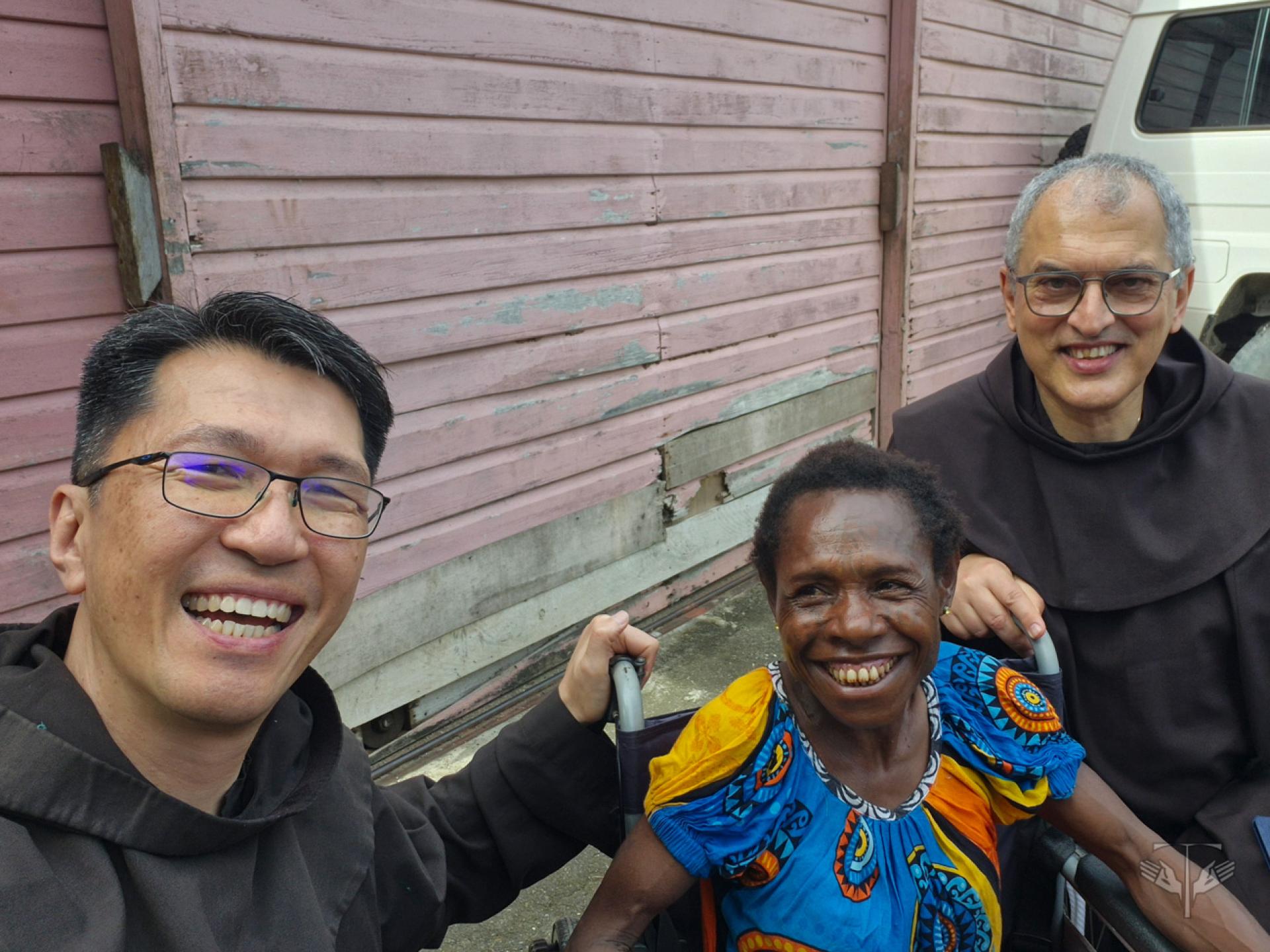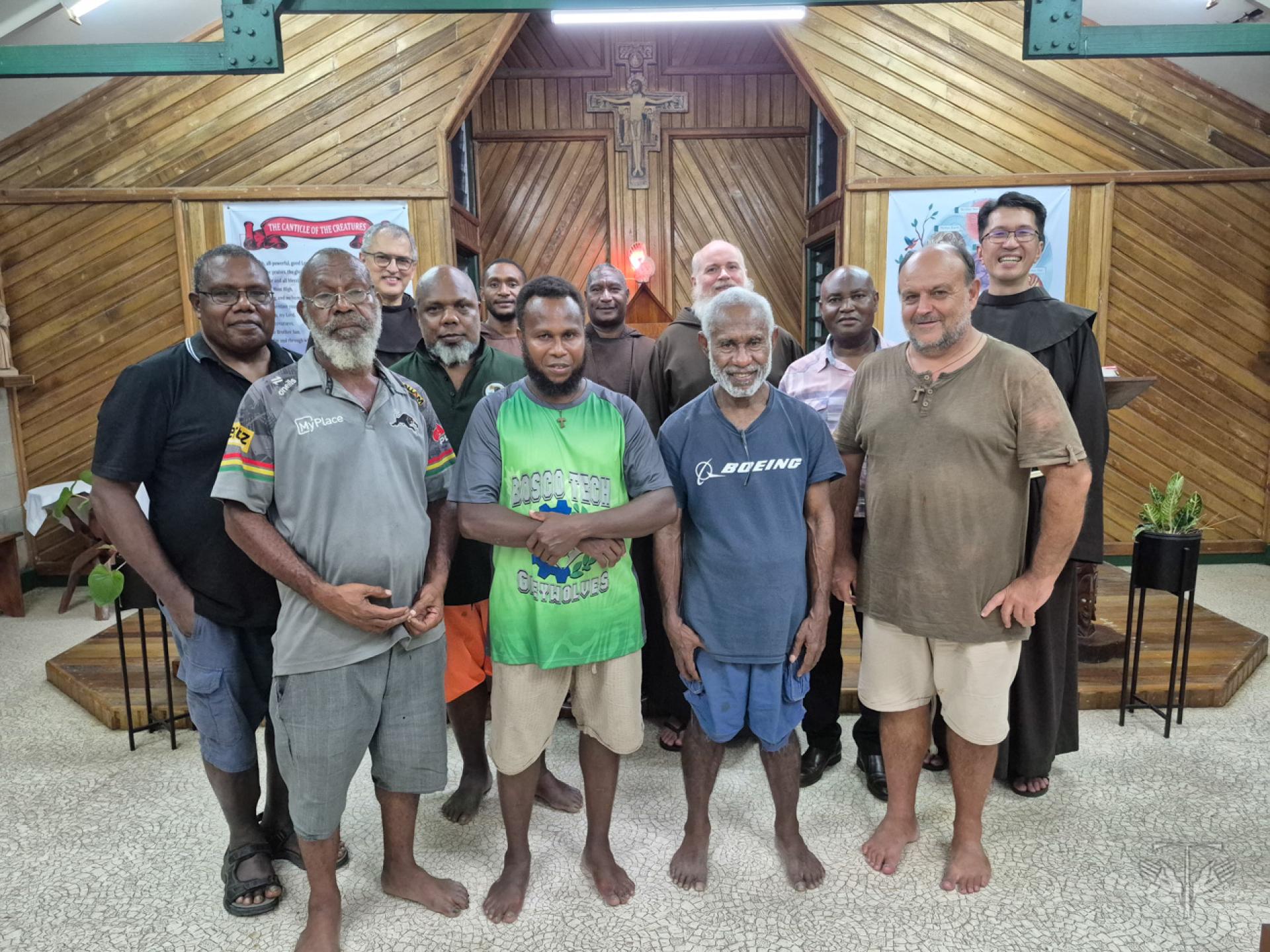 Durante la visita, Fr. Massimo e Fr. John hanno incontrato i frati delle diverse comunità, le Clarisse, le suore MFIC, membri dell’OFS e alcuni sacerdoti e religiosi locali, tra cui il Vescovo di Aitape, Mons. Siby Mathew HGN. È stato un tempo di ascolto, preghiera e condivisione fraterna.