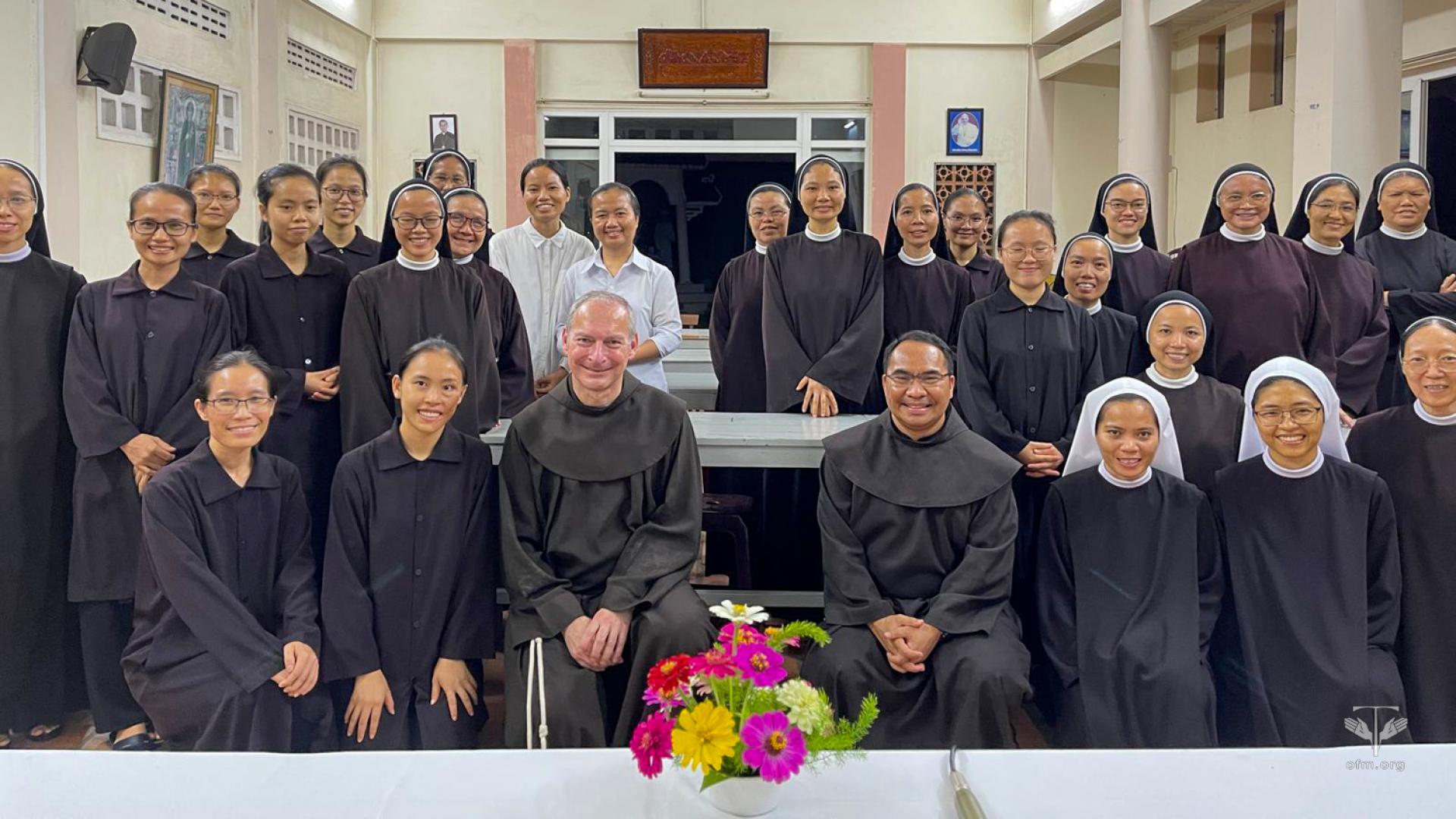 Il 24 aprile, nella città di Hồ Chí Minh, conosciuta anche con l’antico nome di Sài Gòn, nel quartiere di Thủ Đức si è svolto l’incontro con i numerosi frati professi temporanei, con i quali si è potuto discutere nuovamente i temi che riguardano l’identità francescana. Nel pomeriggio, Fr. Darko e Fr. Hieronimus hanno incontrato le Clarisse, il cui convento si trova dall’altra parte della strada rispetto al convento dei frati. Fr. Hieronimus ha presieduto la messa, per poi trattenersi in un incontro dal sapore familiare con le sorelle, condividendo le esperienze della comune vocazione.